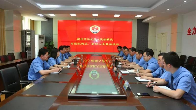 5月22日,沾化区检察院党组对内设机构中层领导干部进行集体谈话。谈话由沾化区检察院党组书记、检察长黄鲁滨主持。
