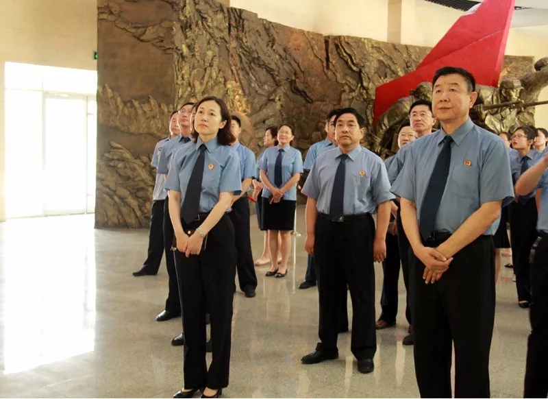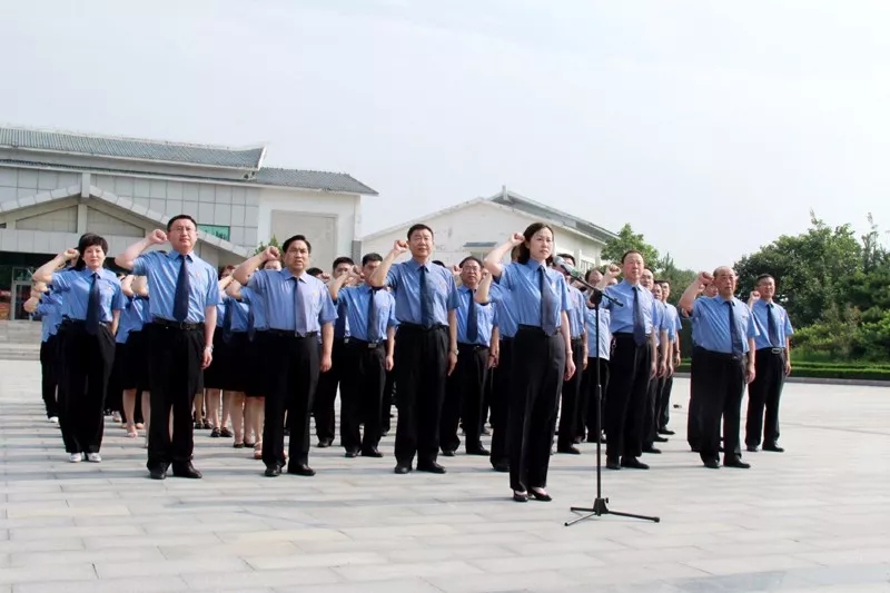 全体干警面向党旗和烈士纪念碑重温入党誓词
