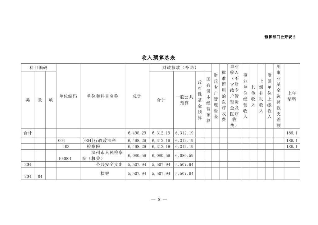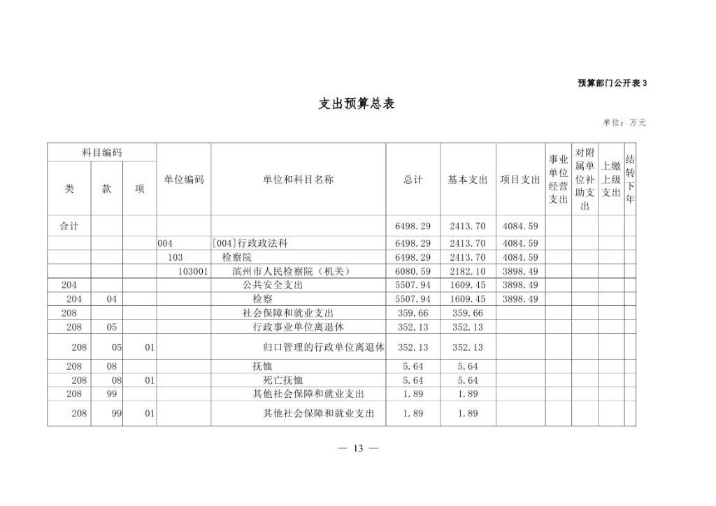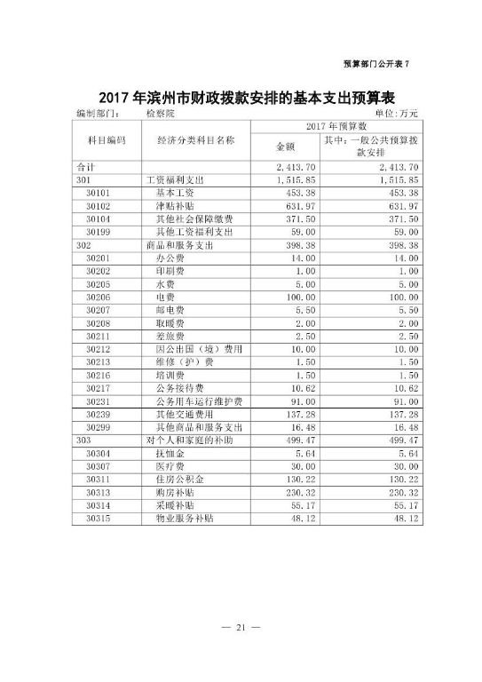 2017年滨州市人民检察院部门预算公开