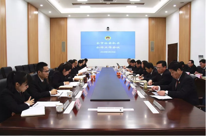 3月26日,滨州市检察院召开全市检察机关公诉工作会议。会议传达了全省公诉工作会议精神,通报了去年全市案件质量评查等相关情况,对全市开展公诉能力提升年活动作出部署,滨城、无棣分别作了经验交流。