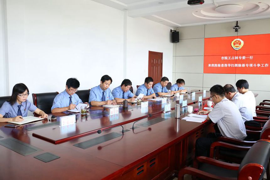 7月18至19日,滨州市检察院检委会专职委员、扫黑除恶专项斗争领导小组副组长王占林带领督导组先后到邹平县检察院、阳信县检察院督导检查扫黑除恶专项斗争工作。