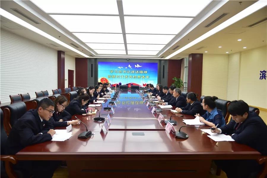 近日,为弘扬“五四”精神,滨城区检察院召开以“学习总书记讲话精神,做新时代优秀检察青年”为主题的青年座谈会,滨城区检察院党组书记、检察长陈学敏及其他党组成员,35周岁以下青年干警参加座谈交流。