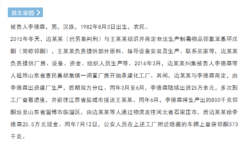 李德森非法生产、买卖制毒物品案 ——非法生产、买卖邻酮,数量特别巨大,依法惩处