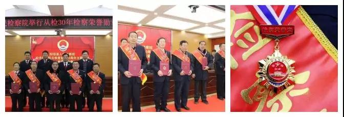演讲完毕,授予仪式正式开始,仪式上,阳信县检察院王希荣、王海滨、贾鲁军、王载龙、宋建波五名同志被授予从检30周年检察荣誉章。