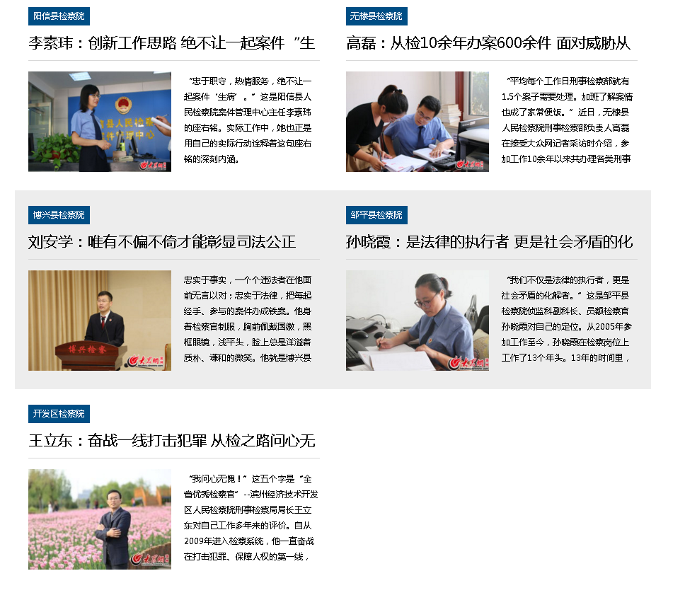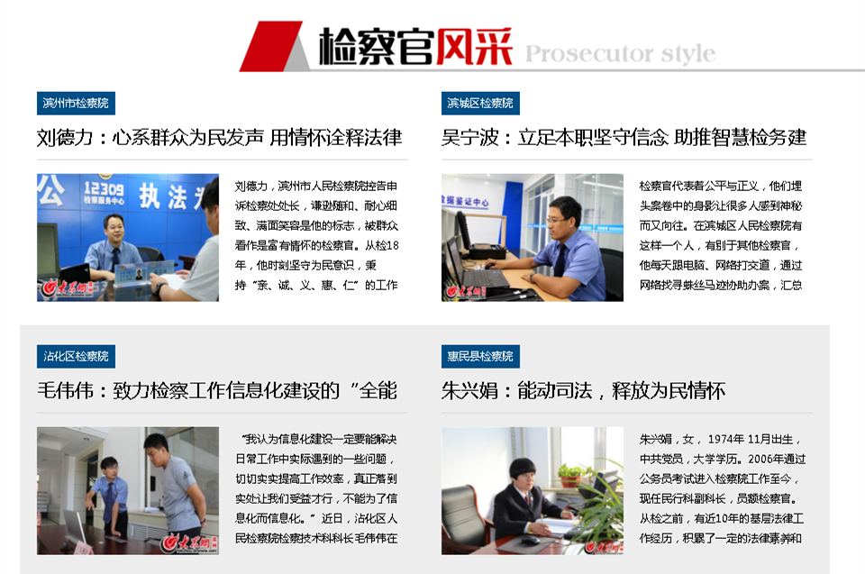 更多详细内容可登陆滨州大众网网站,点击专题,然后点击检察官风采即可浏览: