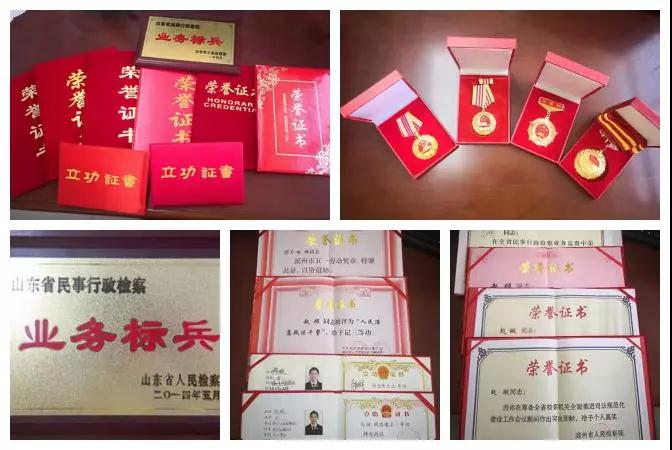她先后获得“山东省民行检察业务标兵”、“全市人民满意政法干警”、“全市检察业务专家”、 “滨州市五一劳动奖章” 等荣誉称号,入选全省民行检察业务人才库。记个人三等功3次。