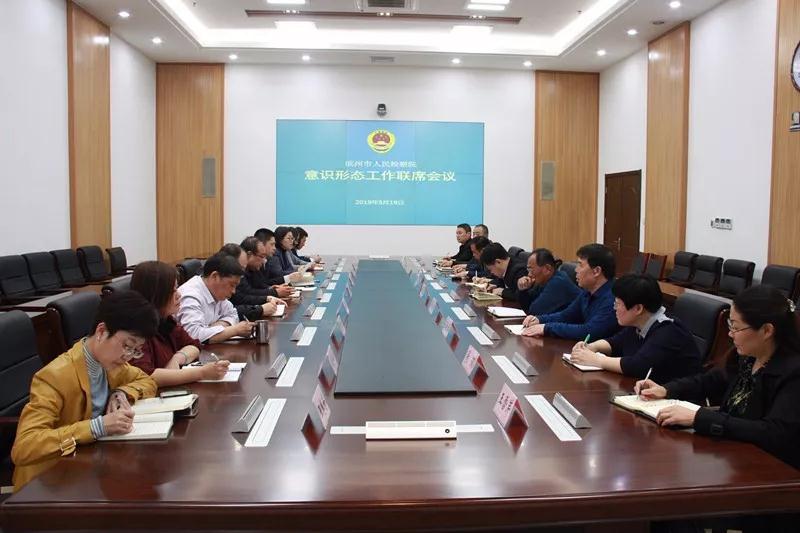 3月19日,滨州市检察院召开意识形态工作联席会议,市检察院部门主要负责人参加会议。会议传达学习了山东省检察院《关于进一步加强意识形态阵地管理建设的通知》等文件,通报了市检察院机关今年以来意识形态工作情况,对当前意识形态阵地面临的形势进行了分析研究,对下一步意识形态工作进行了安排部署。市检察院党组成员、政治部主任孙春晓主持会议并讲话。