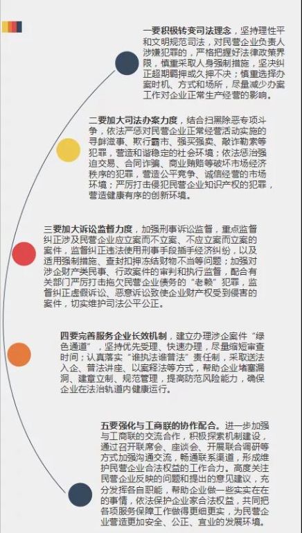 赵霞检察长介绍到,近年来,全市检察机关按照上级部署要求,充分发挥各项检察职能,切实加强对民营企业的依法、平等、全面保护,努力营造法治化的营商环境。研究制定《关于服务保障优化营商环境为民营经济高质量发展提供司法保护的意见》。把司法办案作为保护民营企业发展的根本手段,认真执行最高检办理涉民营企业案件11条执法司法标准,依法严厉打击侵犯民营经济发展的各类犯罪。认真贯彻落实宽严相济刑事政策,严格把握案件认定标准,对于法律政策界限不明、罪与非罪不清的,依法慎重妥善处理。落实重大项目和重点企业常态化联系机制,常态化走访企业问需求、听建议,深入开展“千名干部联千企”“五进两服务”“四下基层”等活动,建立涉企巡回检察室、涉企案件经济影响评估制度、知识产权检察保护中心等服务平台,努力打通服务民营企业发展的“最后一公里”。
