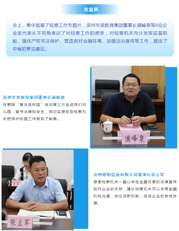 8月27日,滨州市人民检察院开展检察开放日活动,邀请民营企业家走进检察机关,召开服务保障民营经济高质量发展座谈会,征求市工商联和民营企业家的意见建议。