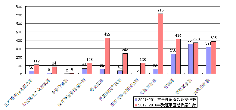 图2:2007-2016年受理审查起诉高发犯罪、新型犯罪对比表(单位:件)