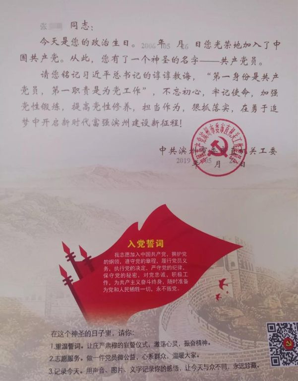 5月24日下午,滨州市检察院机关第一党支部开展了党员过“政治生日”主题党日活动,为4位党员集体过“政治生日”。