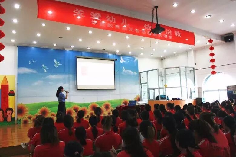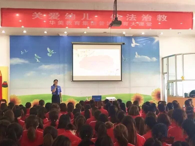为增强幼儿教师学法、懂法、守法、用法意识,2018年7月14日上午,滨州市人民检察院未成年人刑事检察处普法宣讲团走进华美幼儿园阳光园,举办了《关爱幼儿·依法护航》法治公开课活动,华美教育集团300余名幼儿教师参加了此次活动。